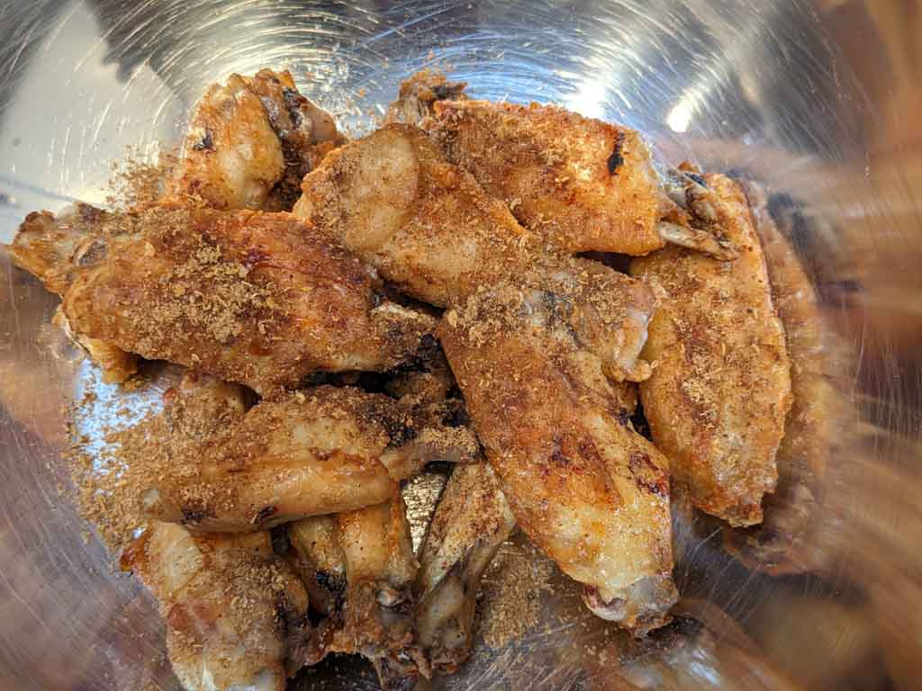 Mix spices with chicken wings