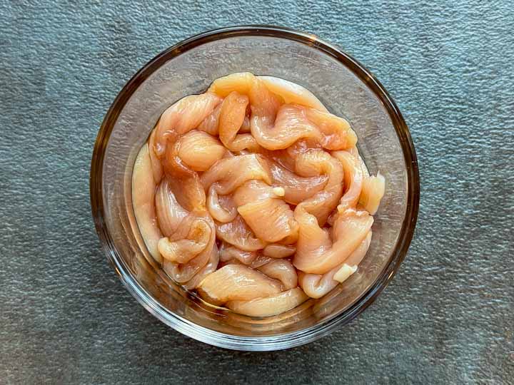 Marinate chicken with soy sauce and set it aside.