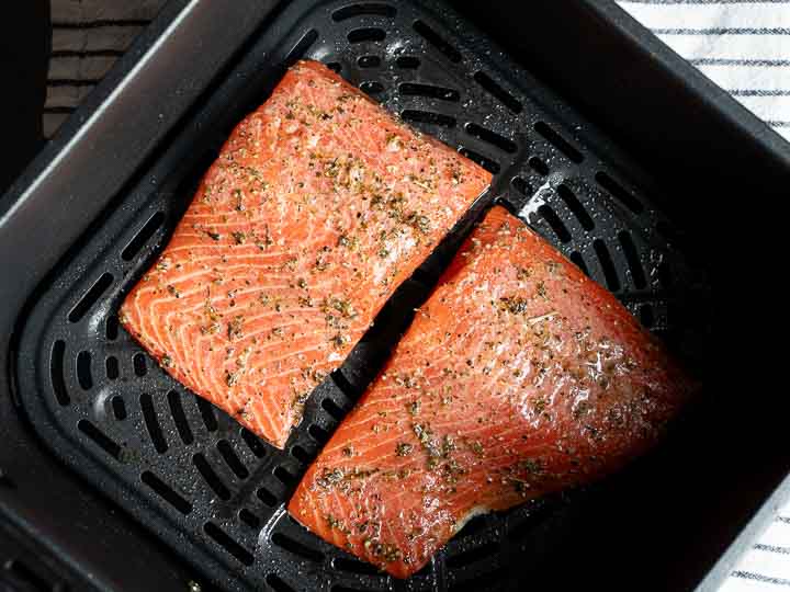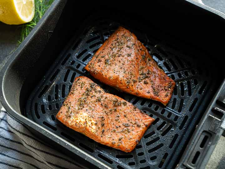 Air-fryer cooking time varies depending on the size/thickness of the salmon piece, and the brand or model of the air fryer you use. This is the fourth air-fryer I use in my kitchen and trust me when I say they all performed differently. For me usually 8 – 10 mins is ideal for two 6 oz (170g) salmon pieces. Start with 8 minutes and then check for doneness.