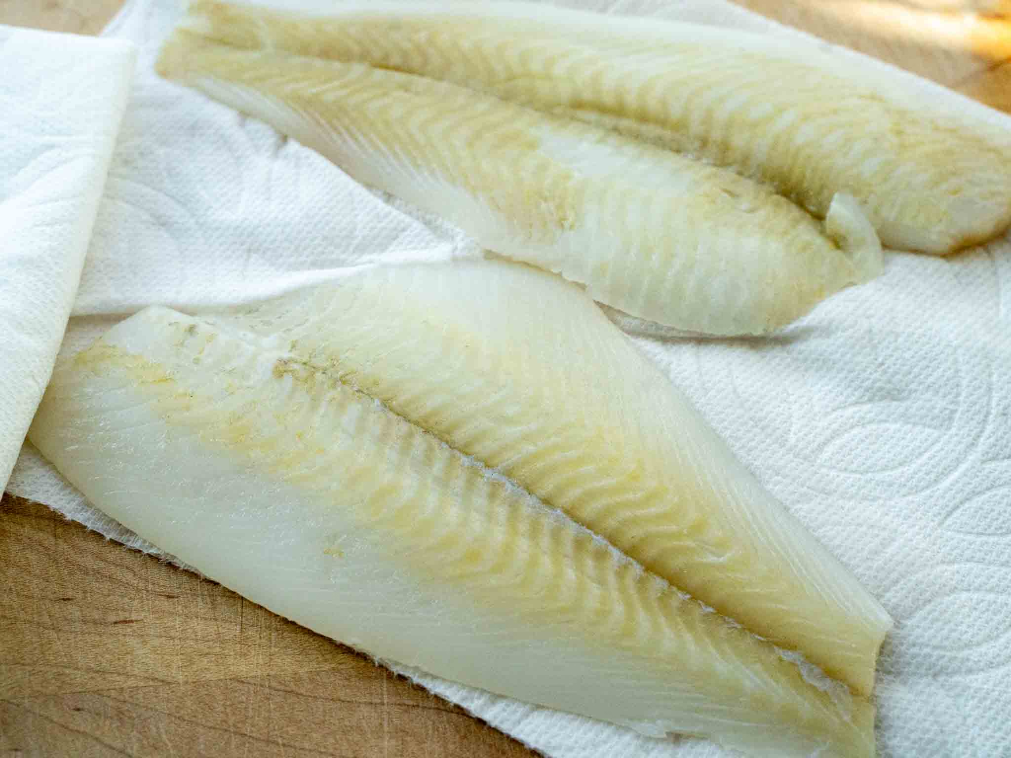 2. Pat the fish fillets dry with paper towels to remove any excess moisture.