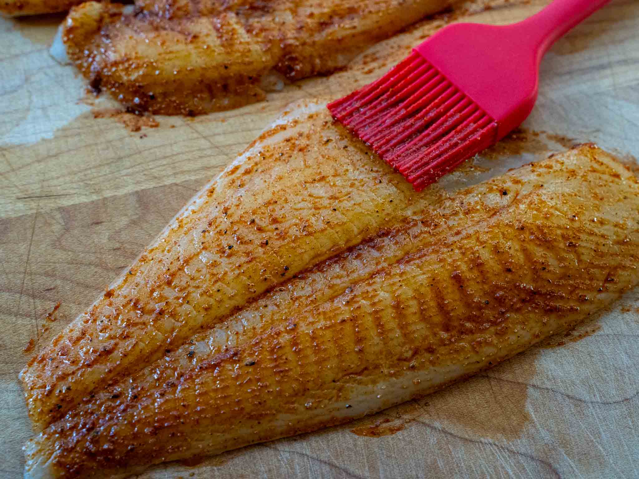 3. Using a brush or a spoon, generously apply the marinade to both sides of the fish fillets.