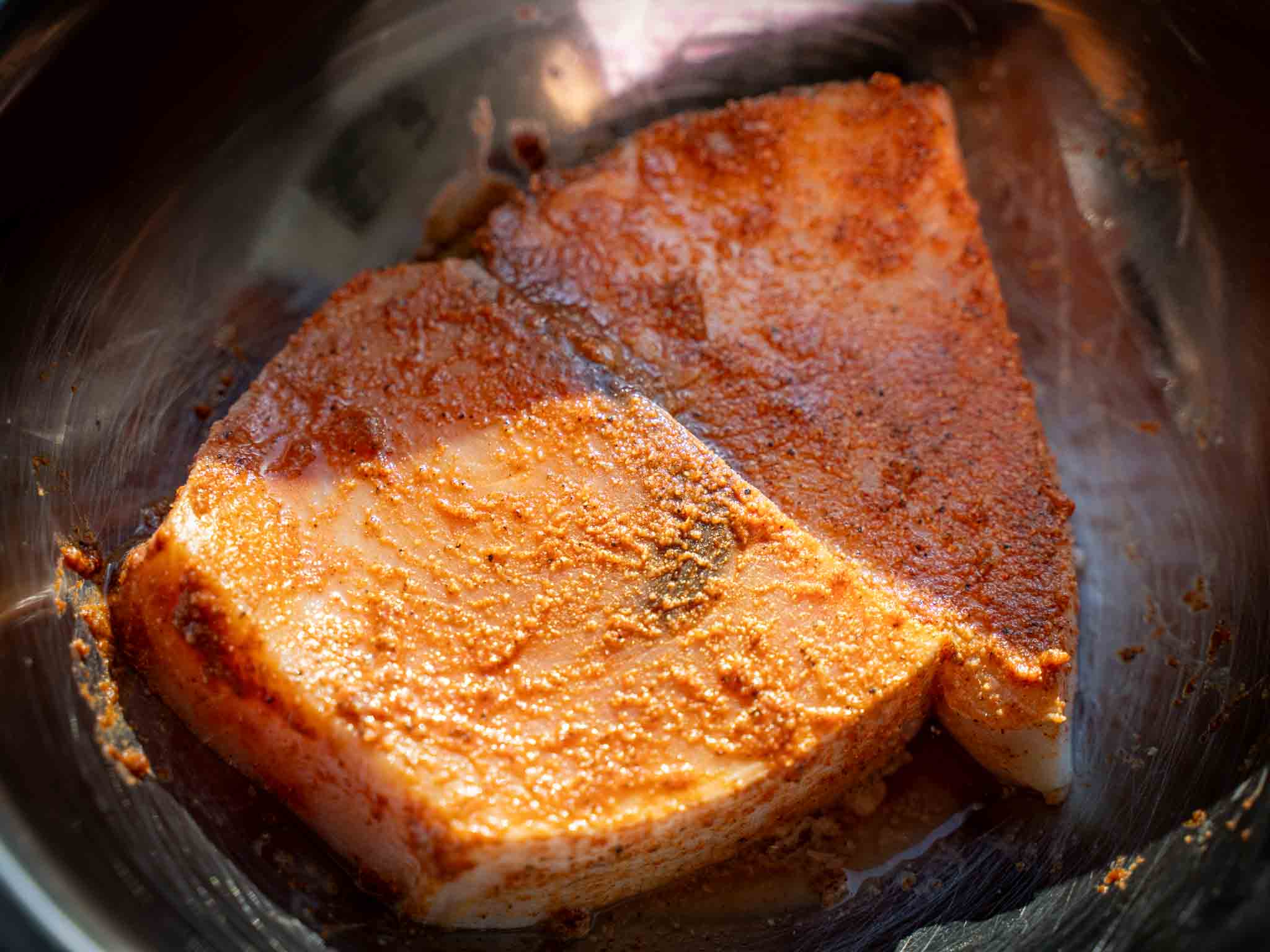 Apply the marinade all over the fish steaks. Let them sit for about 10 minutes.