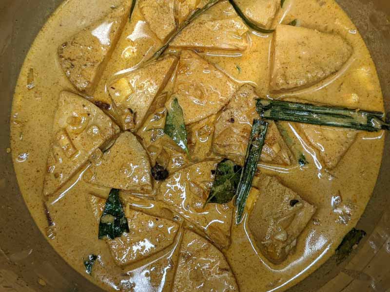 That being said, there are sooo many ways people make this Polos/young jackfruit curry. For example, many people use the pressure cooker in many ways to make Polos curry. Some people pressure cook/boil the whole jackfruit or cut up pieces first to soften it and make the curry as usual which saves time. I also make the curry in my pressure cooker sometimes but this slow-cooking method is by far my favorite.