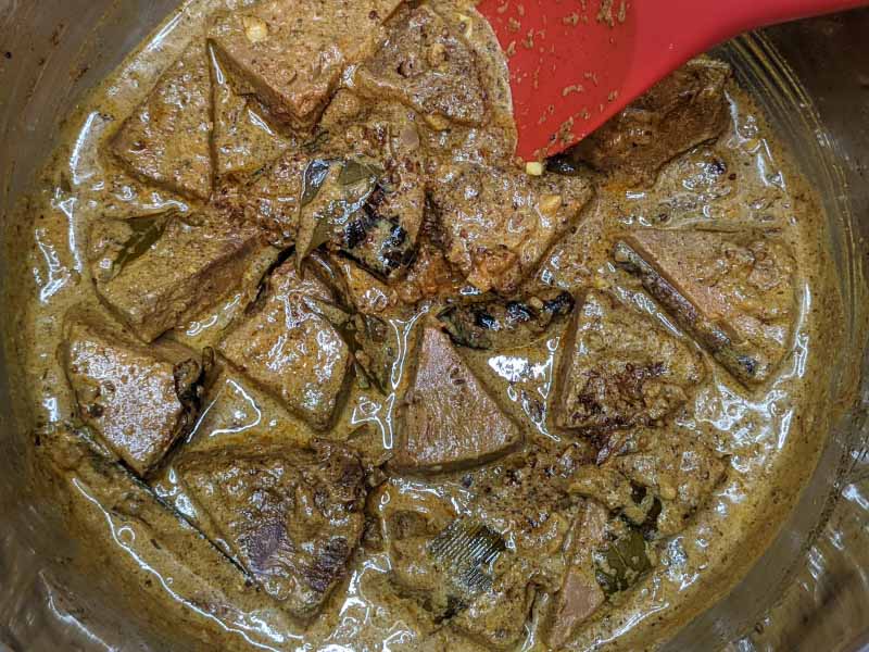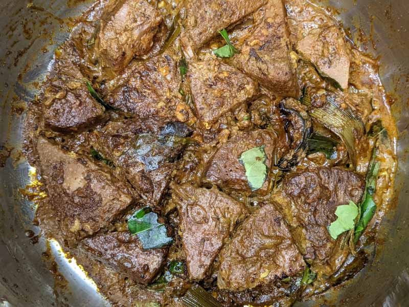 - This curry is actually a dry curry. This means this doesn’t have much gravy/liquid. You’d get a very thick gravy that would look like a Pâté. we call “Borey” in Sri Lanka. For me, that gravy is the best part of this curry. It’s a concentration of all the flavors. But if you want more liquid or thinner gravy then add 1/2 or more thick coconut milk.