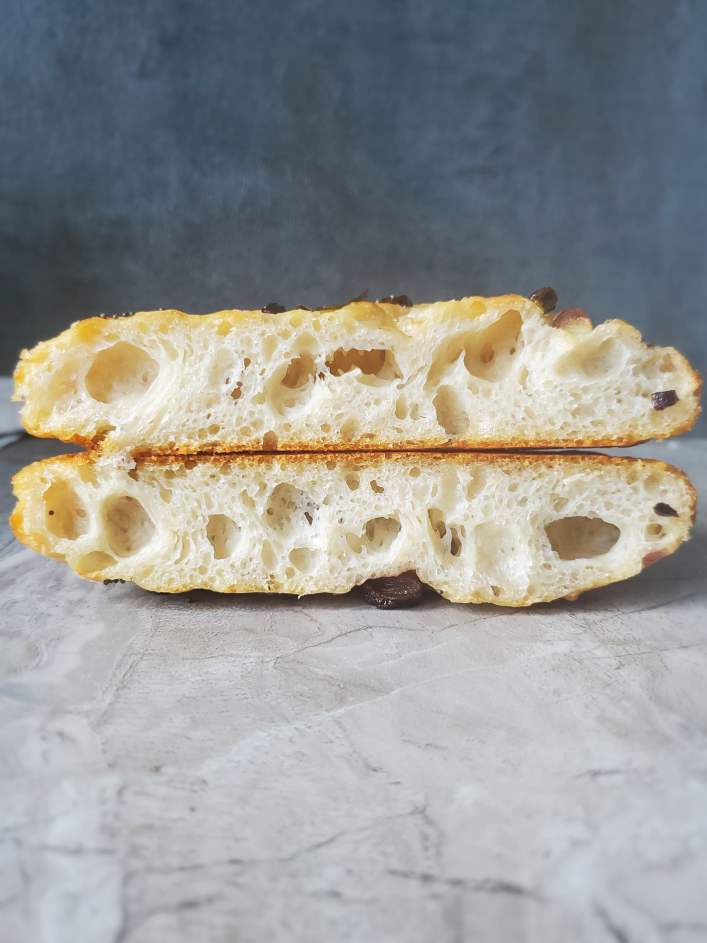 I especially love sourdough focaccia with rosemary and sea salt, because of the open crumb texture (and the flavor of course). But you can easily make focaccia with store-bought yeast. I’ll add the recipe for that on another day. Or If you’re starting out with sourdough this is the perfect recipe for a beginner. It hardly requires sourdough bread baking skills.