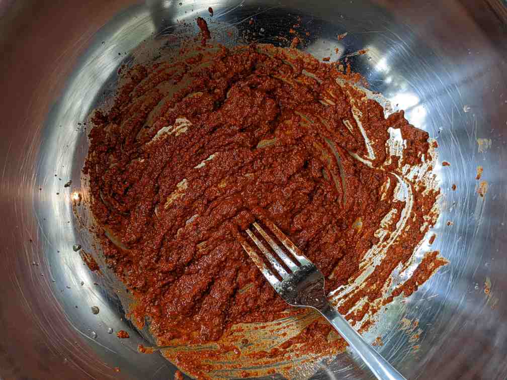 • Add Kashmiri red chili powder for intense bright red color. You'd probably think this is too much chili powder but the majority of the chili powder dissolves in oil.