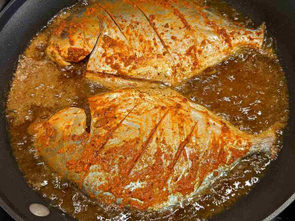 Pompano fish, marinated with spices and then pan fried to perfection. Best for special weeknight meals.