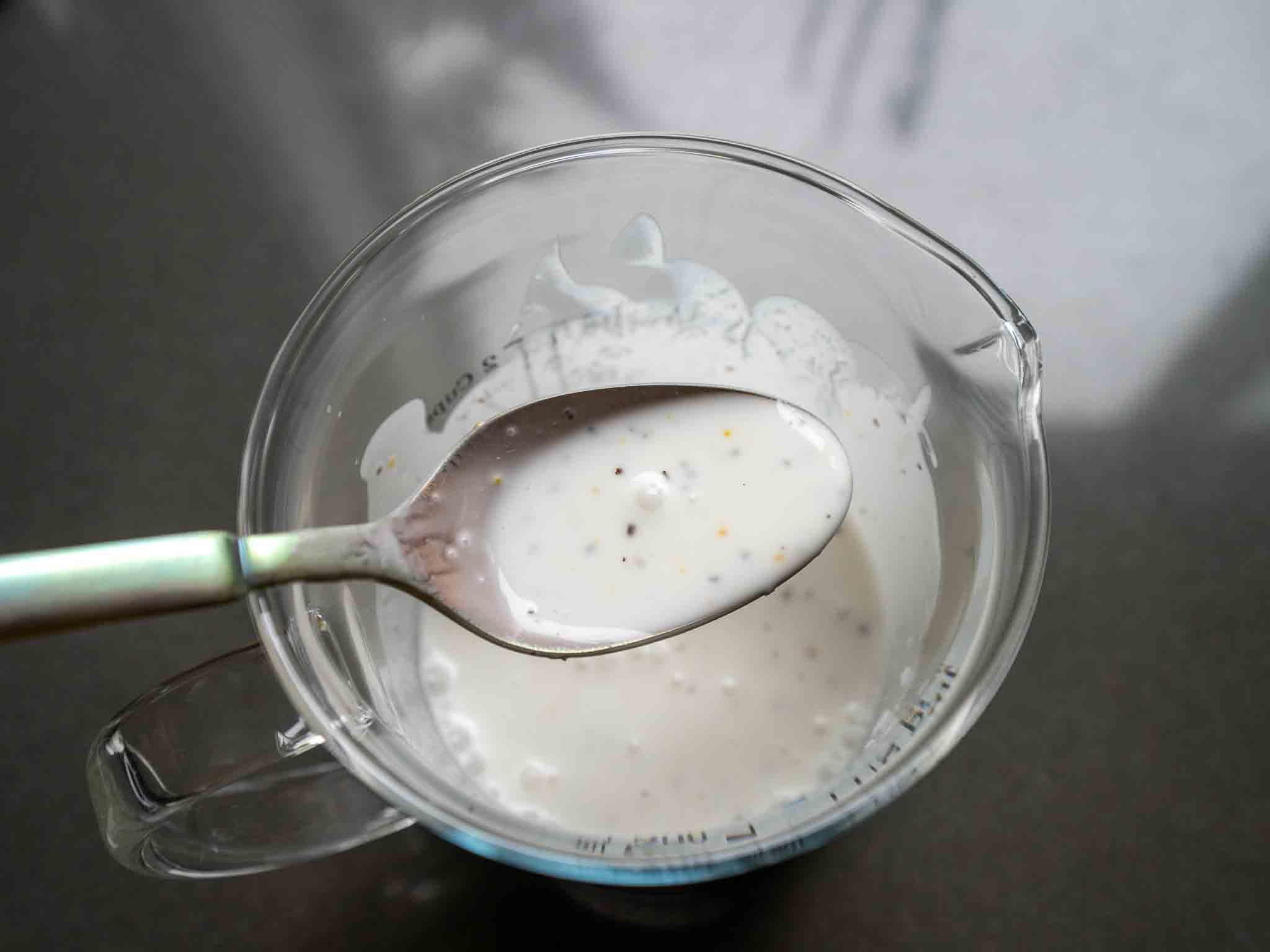 4.  Add the mustard powder to the coconut milk and mix well.