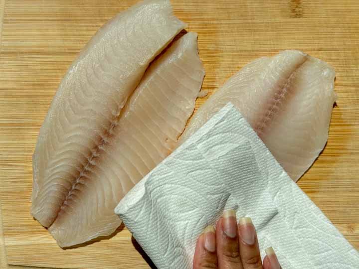 Pat dry the Tilapia fillets with a paper towel to remove any extra moisture.