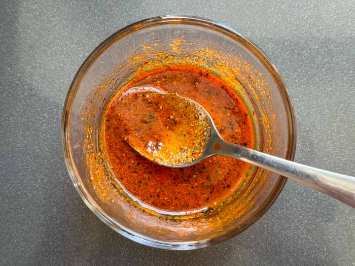 Add oil, chili powder, black pepper powder, garlic powder, salt, and lime to a small mixing bowl. Mix it well to combine.