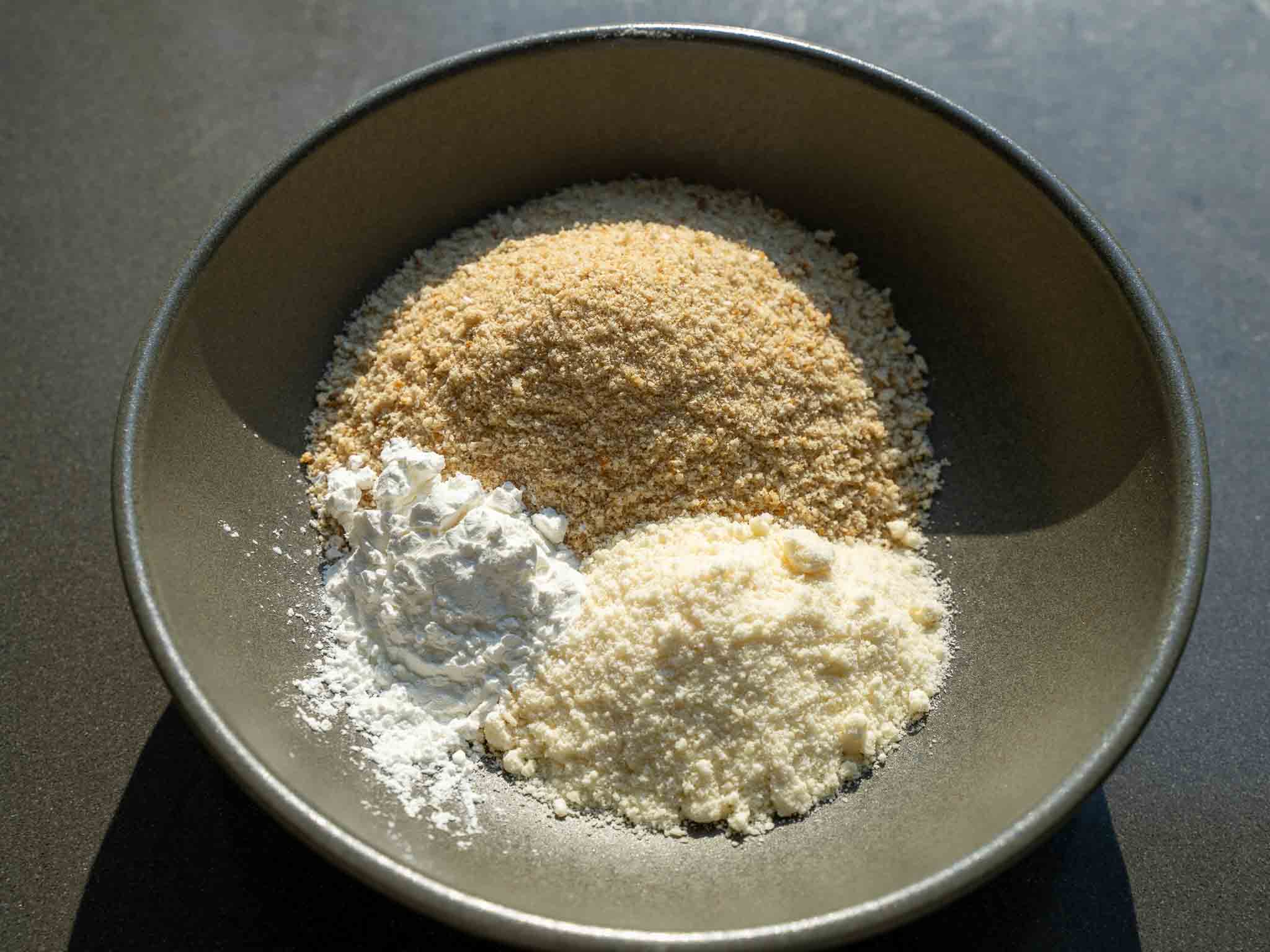 In another deep bowl, mix breadcrumbs, parmesan cheese, and corn starch.